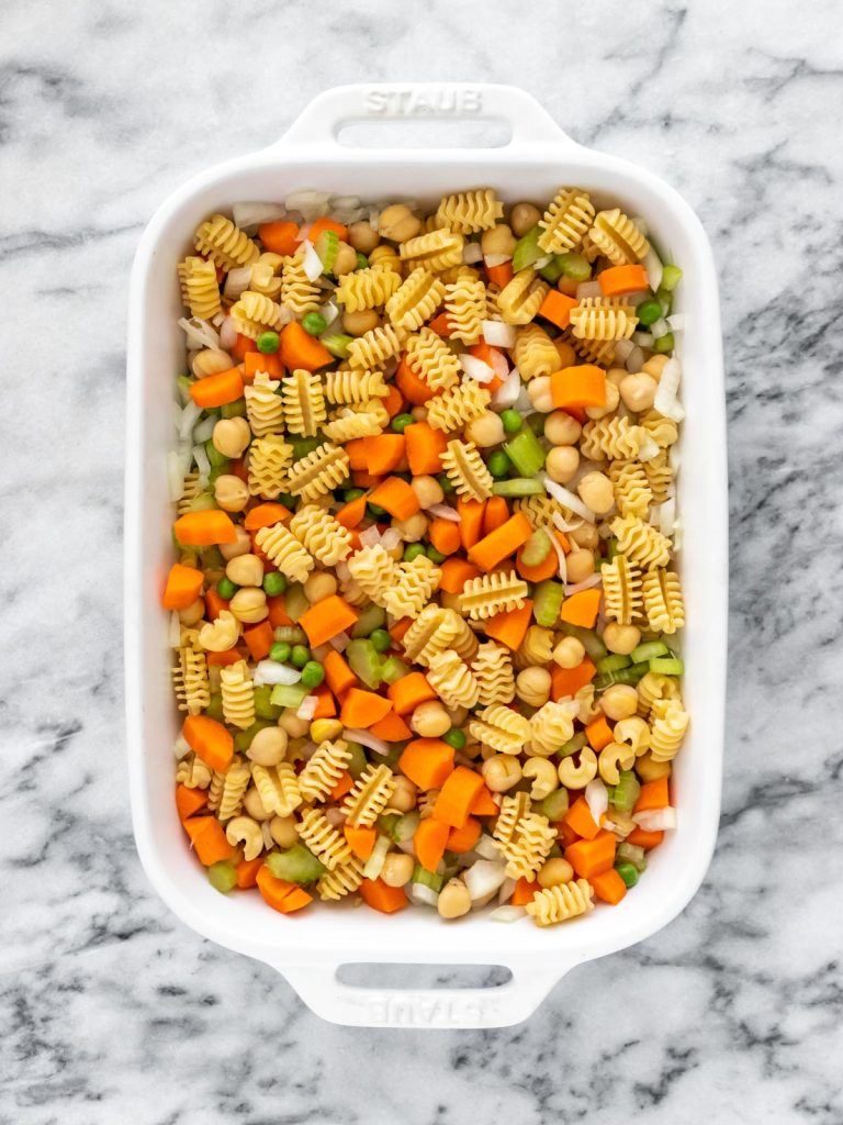 Macarrão de Forno Cremoso com Vegetais e Grão-de-Bico
