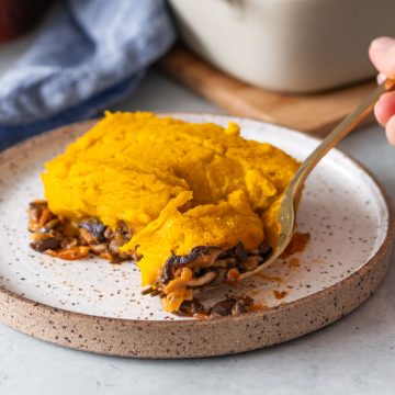 Escondidinho de Cogumelos com Purê de Abóbora