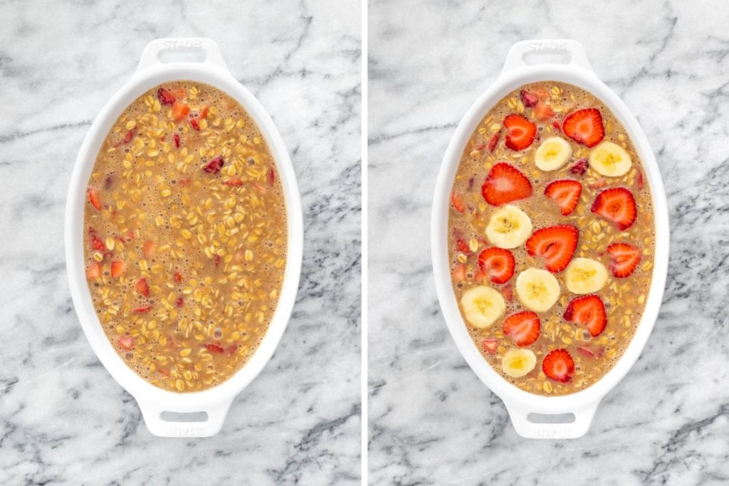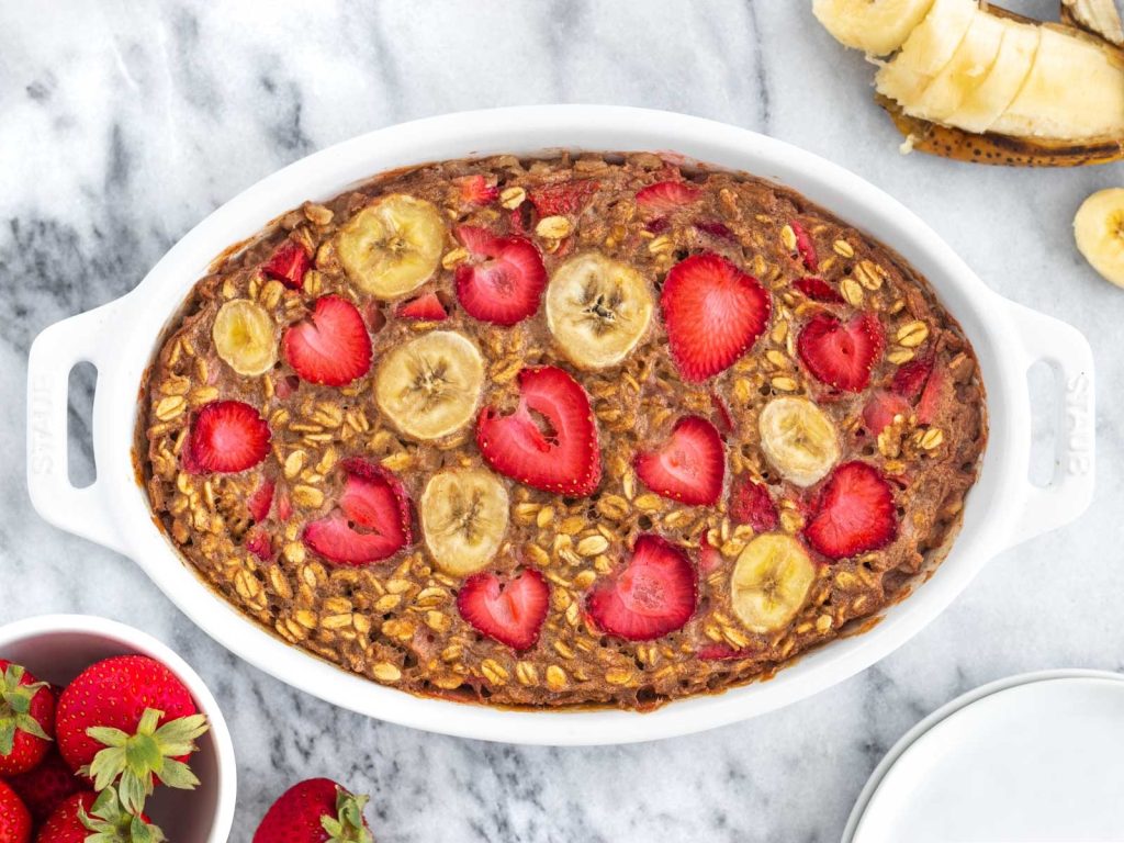 Mingau de Aveia Assado de Banana e Morangos