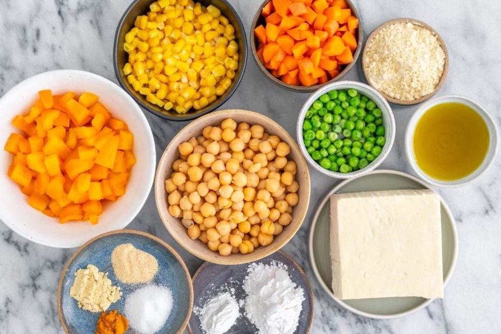 Torta de Legumes com Massa de Tofu e Grão-de-Bico