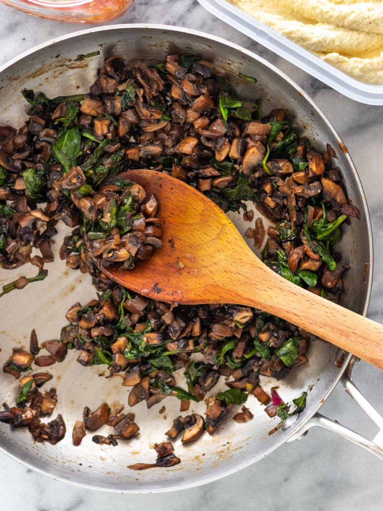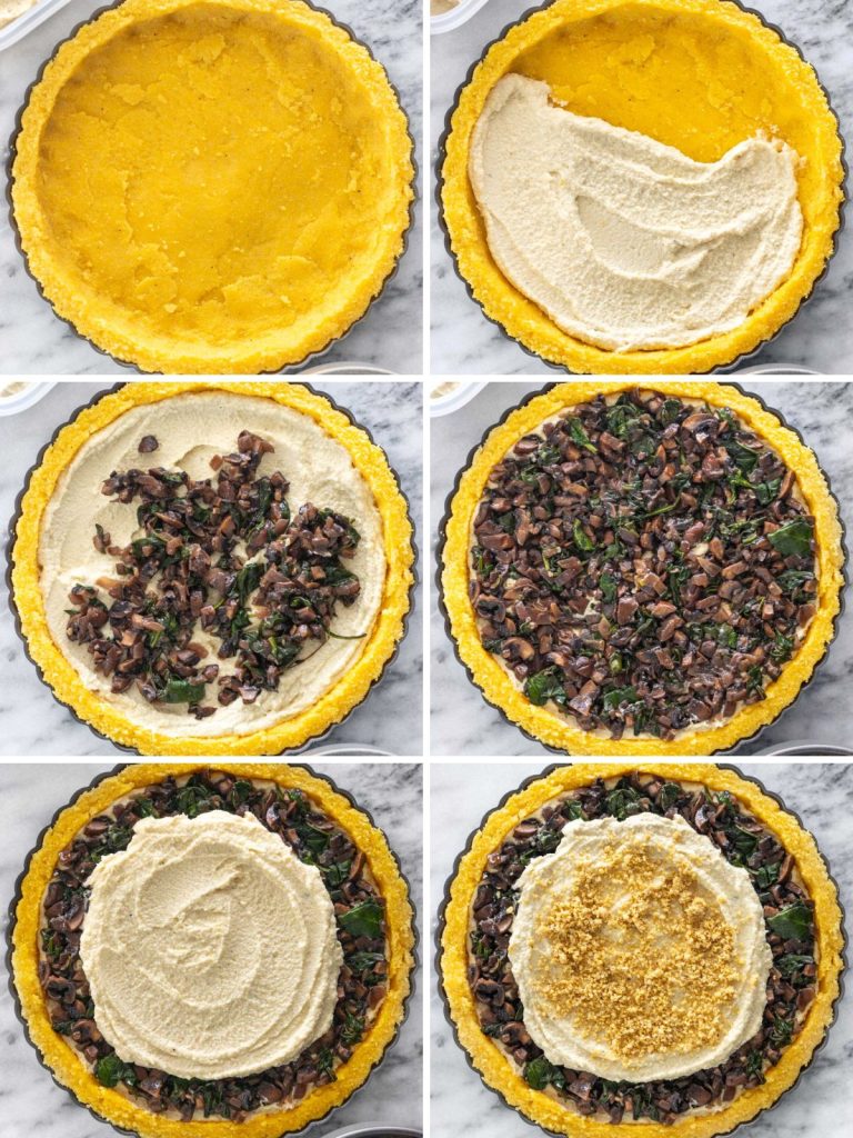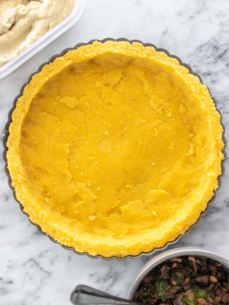 Torta de Polenta com Cogumelos Salteados e Ricota de Couve-Flor