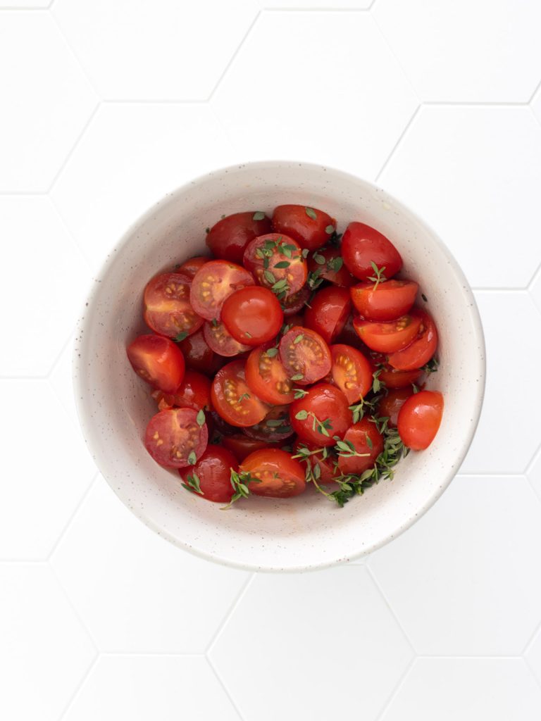 Torta de Tomates-Cereja com Creme de Tofu e Tomilho